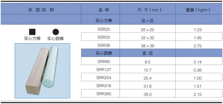 玻璃鋼拉擠型材 >> 實(shí)心方棒、圓棒